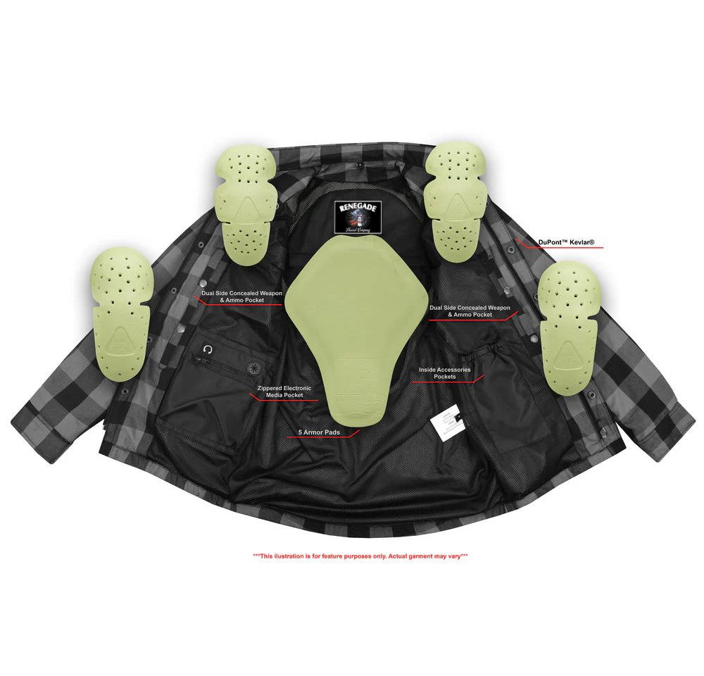 Shoulder, Elbow and Back reinforced with Kevlar.