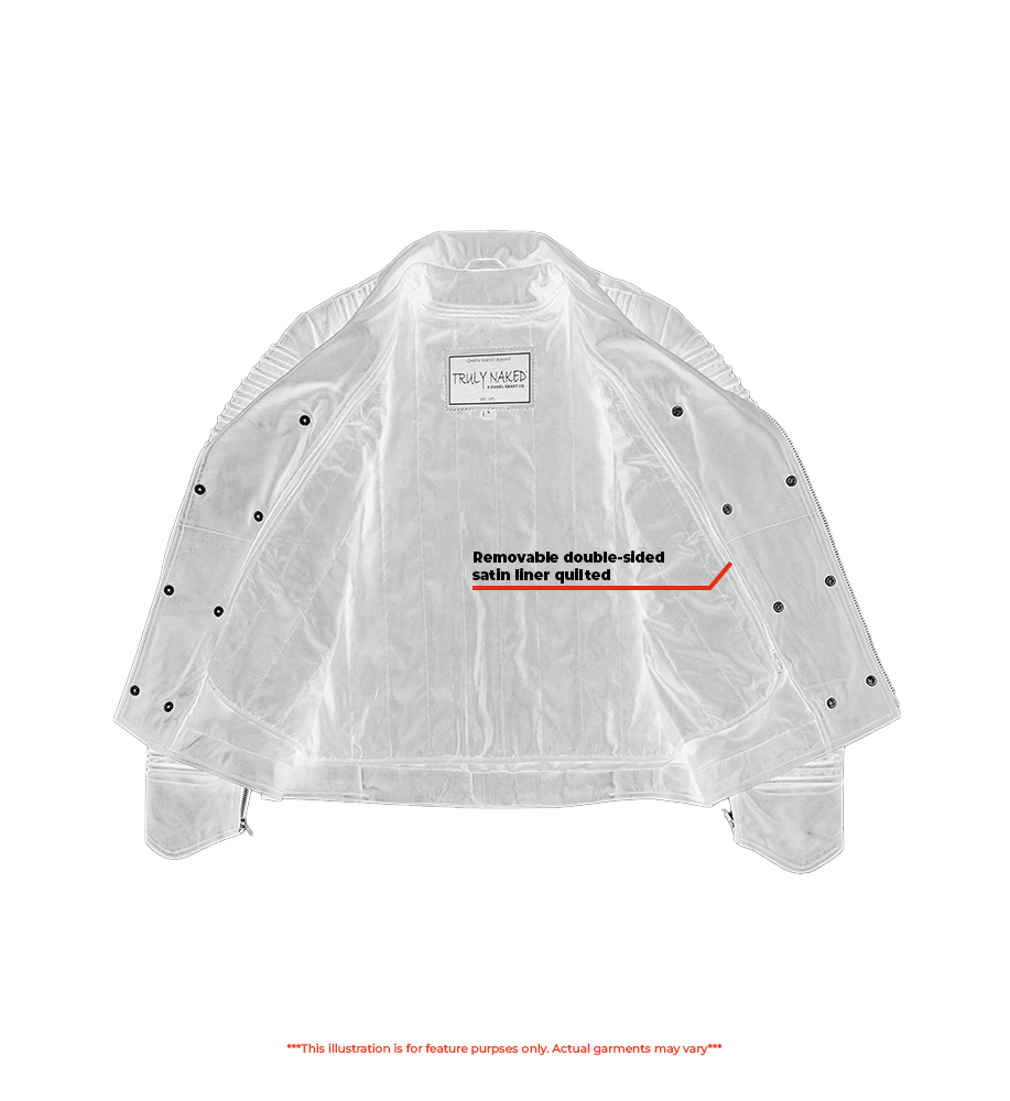 Removable double-sided satin liner quilted for added versatility and warmth.