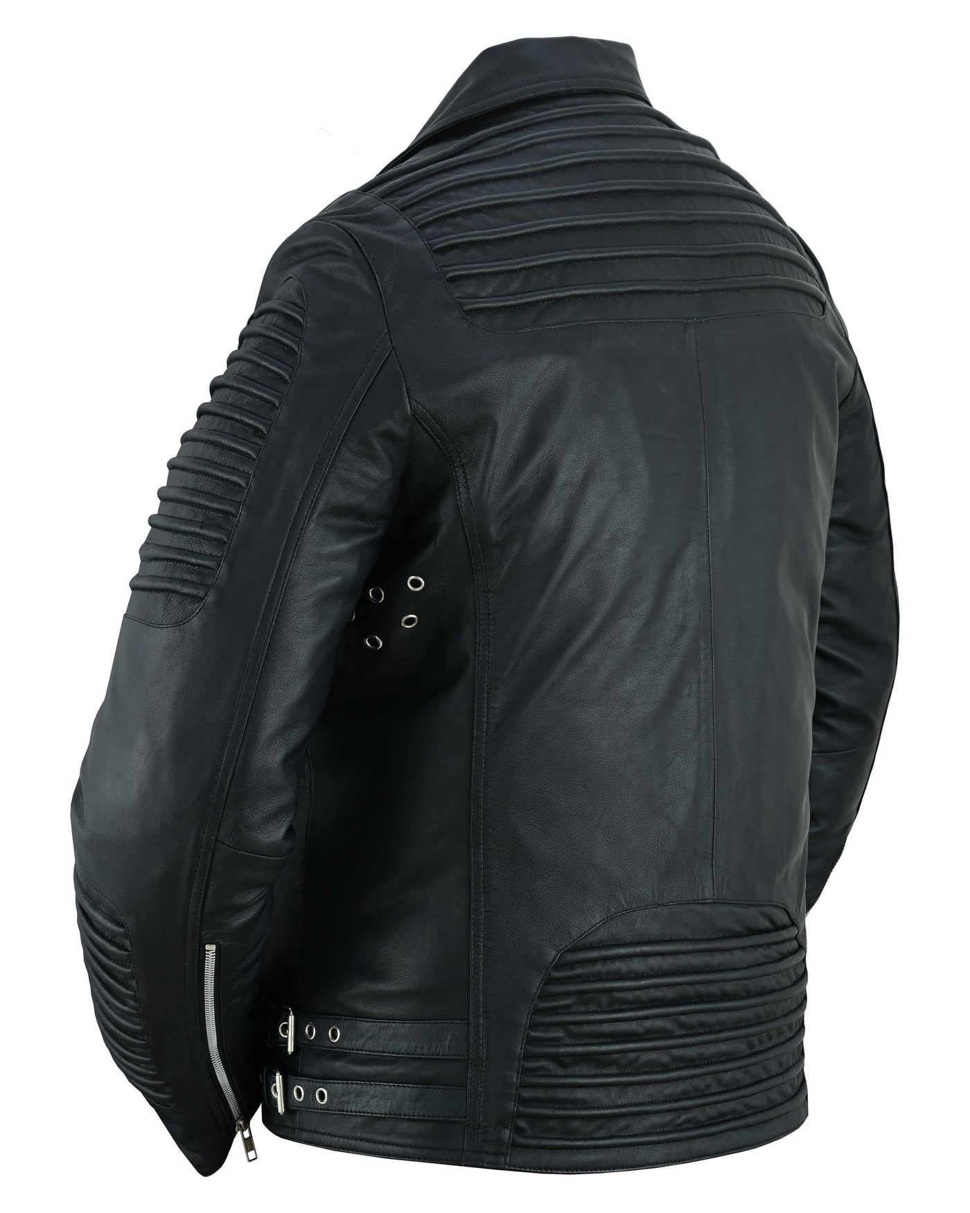 Enhance your style with this Men's Fashionable Leather Jacket, a wardrobe must-have for a timeless cool look. Experience comfort and style with adjustable belts, underarm vents, and decorative details that set you apart.