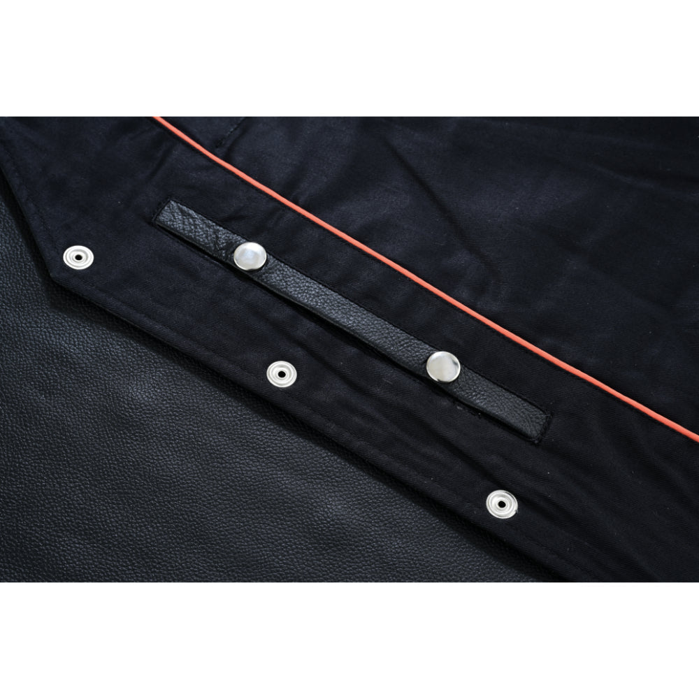 This vest is made from soft, premium-grade milled cowhide 1.2 - 1.3mm leather. The front panels and silver buffalo nickel snaps elevate the classic black leather. You can customize the leather with patches, artwork or embroidery.