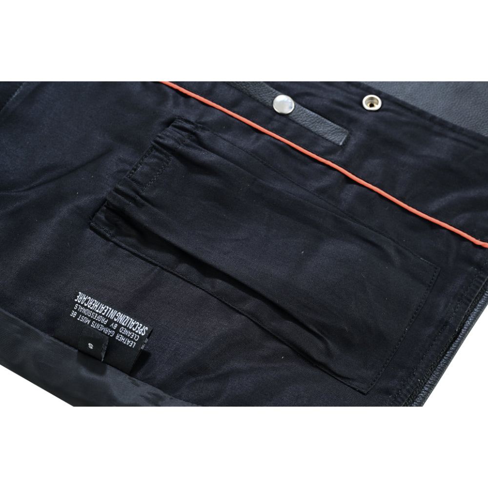 Leather vests are both stylish and functional pieces of gear. Our men's single back panel gun pocket biker vest is an excellent piece of equipment for all seasons.