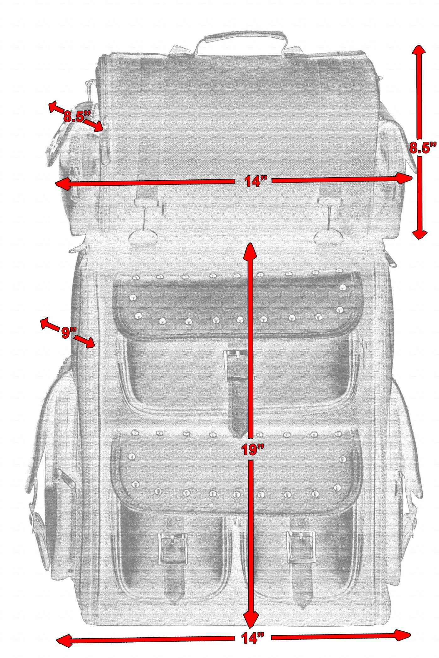 Main side doors include 2 inside mesh pockets and one outside pocket.