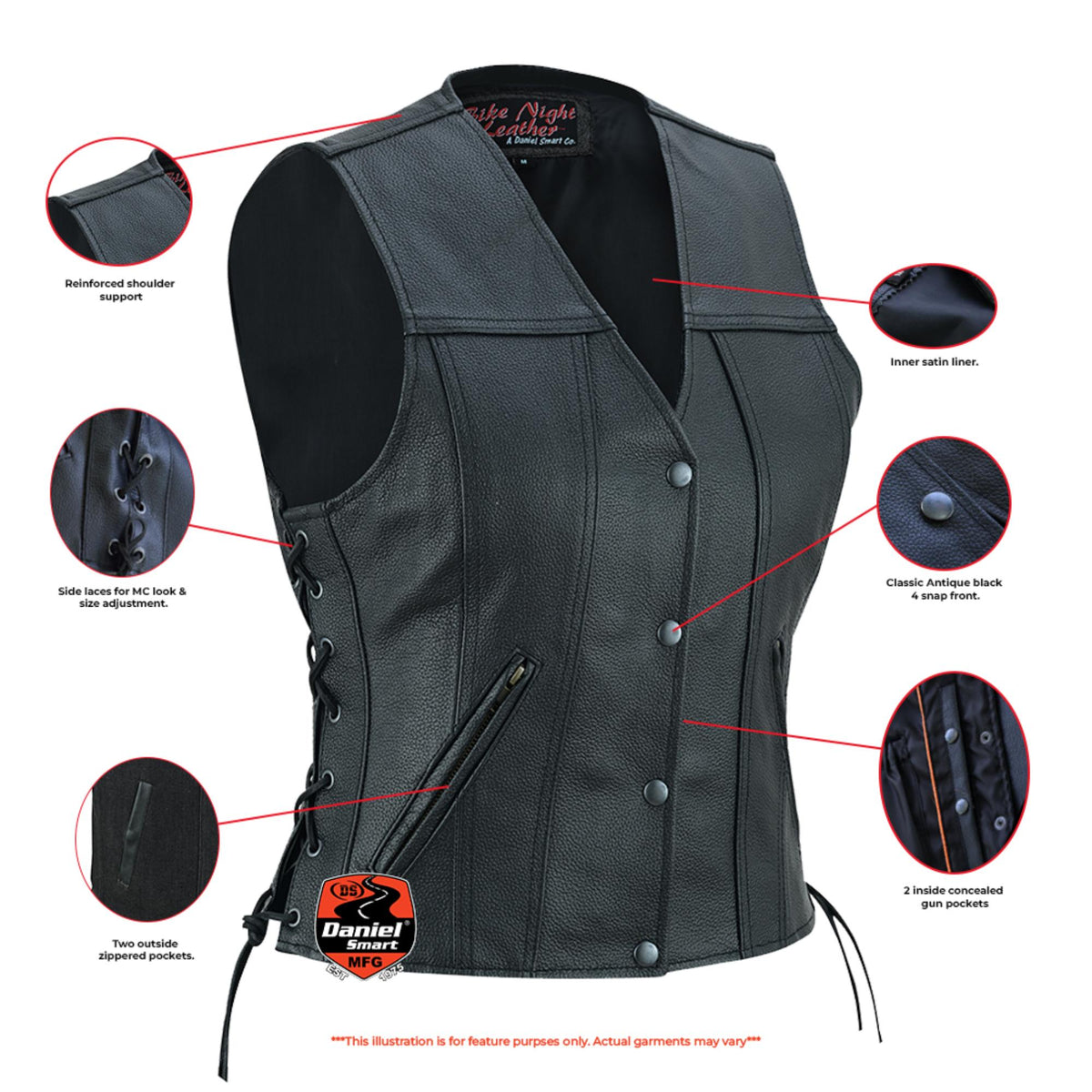 2 inside concealed gun pockets made of special heavy-duty textile with built-in holsters and snap closure.