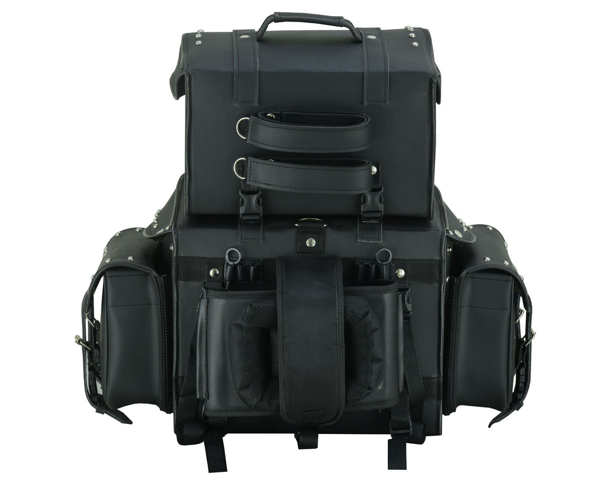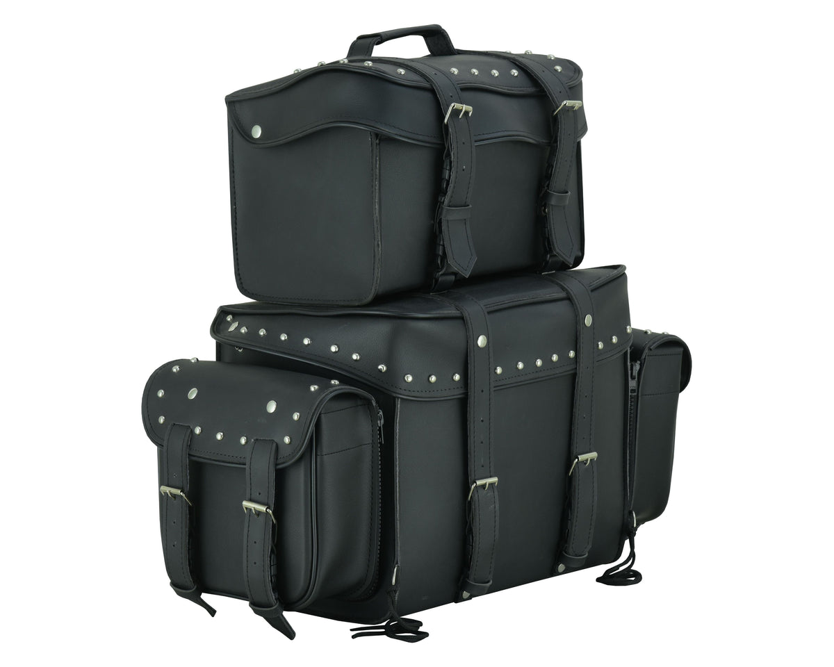 Inform when this item available Leather Black PVC Large 4 Piece Motorcycle Touring Tail Bag wi