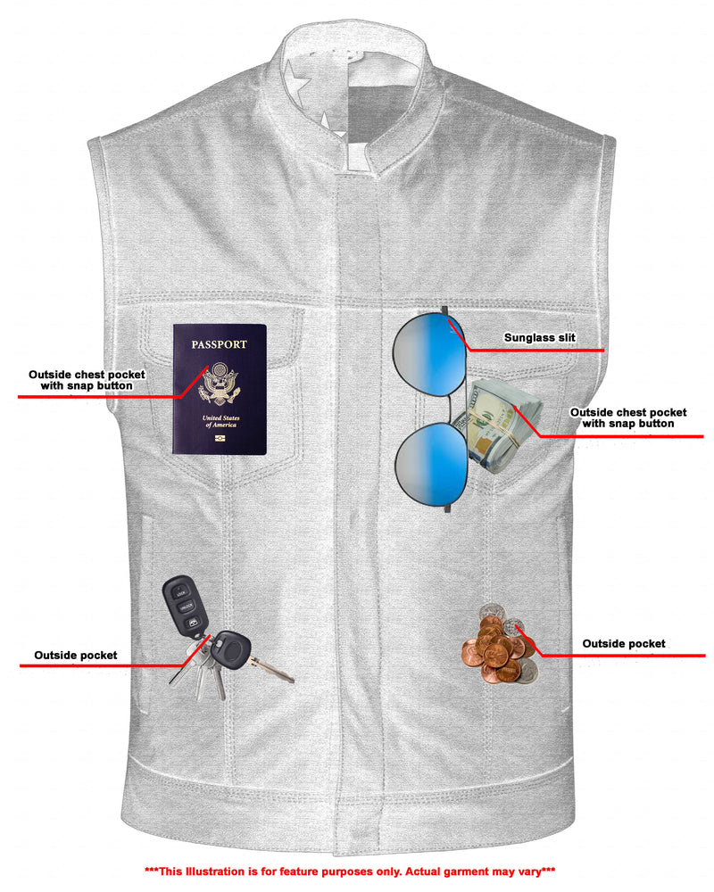2 upgraded style concealed gun pockets between the snap and the zipper made of special heavy-duty textile with built-in holsters and snap closure.
