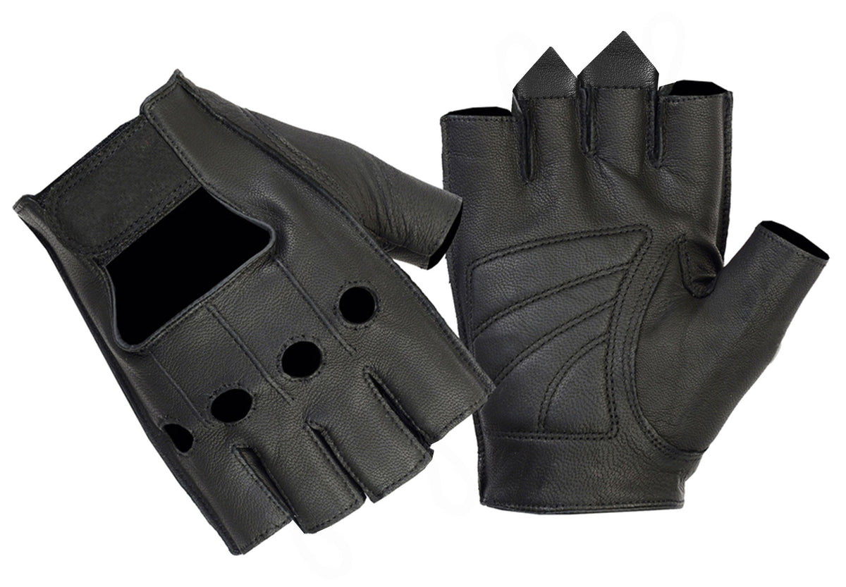 Premium fingerless glove made in premium drum dyed naked goat featuring gel palm for long haul comfort and secure hook-and-loop wrist strap.