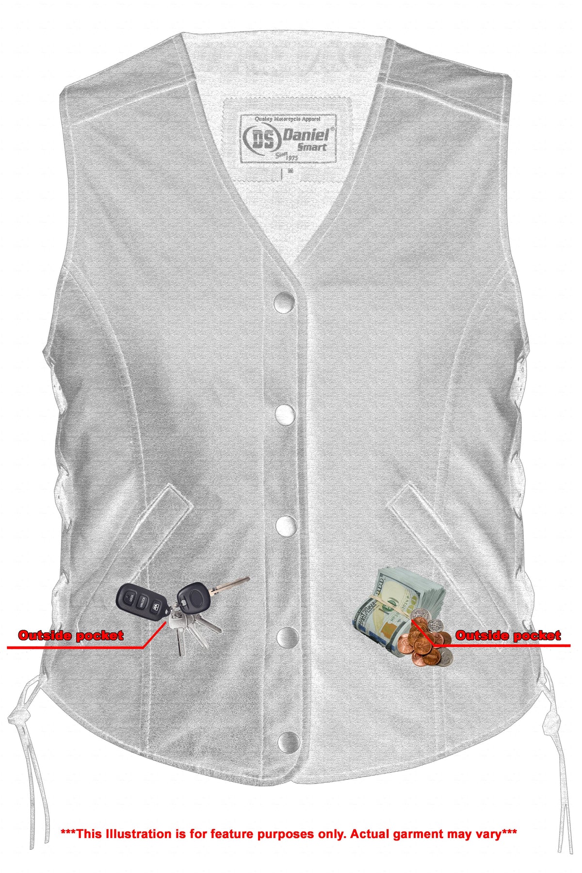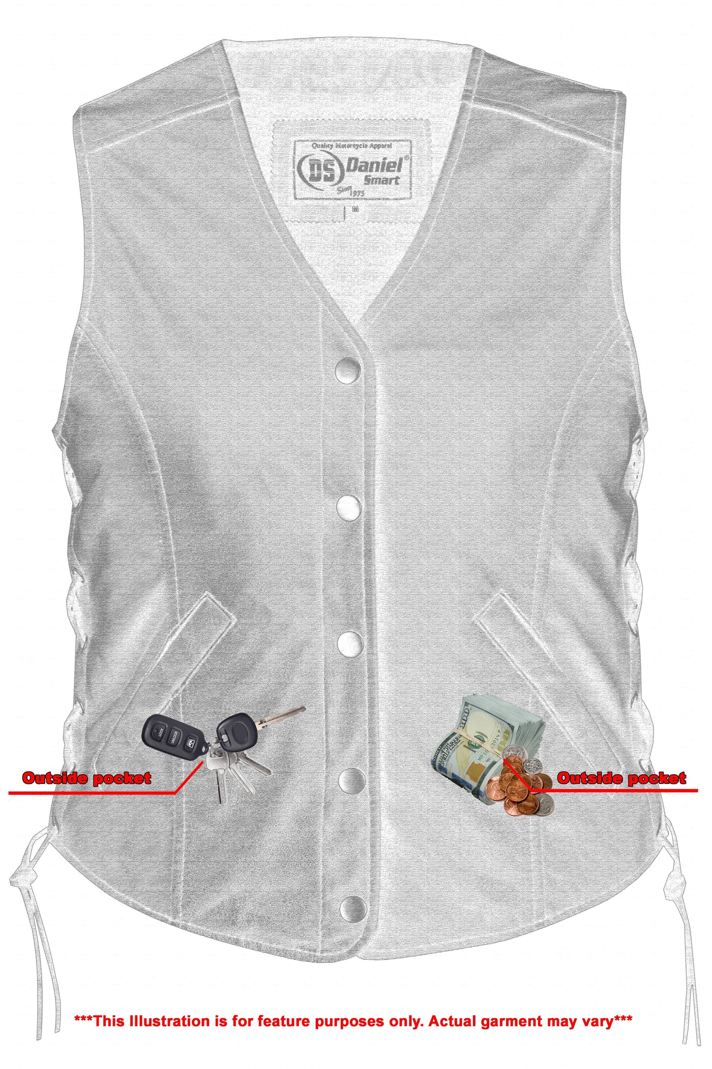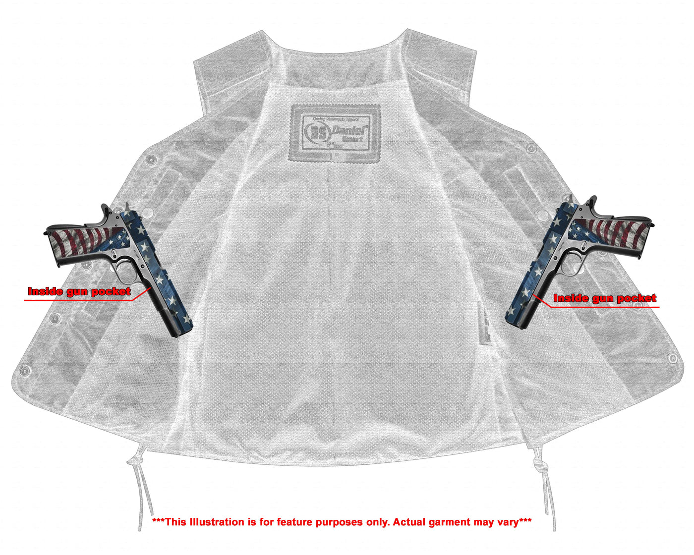 2 inside concealed  Smart Access Pocket made of special heavy-duty textile with built-in holsters and snap closure.