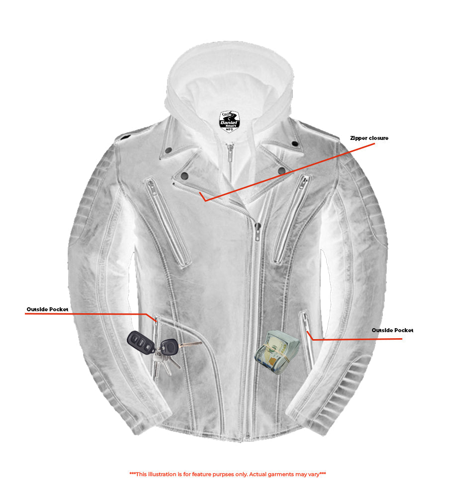 2 inside concealed gun pockets made of special heavy duty textile with built-in holsters and snap closure.