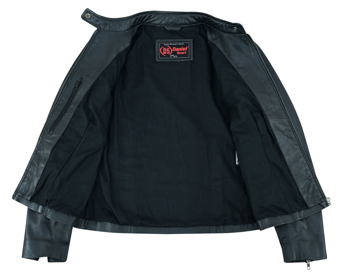 Scooter Collar with Snap Closure and covered zippers for cleaner look.
